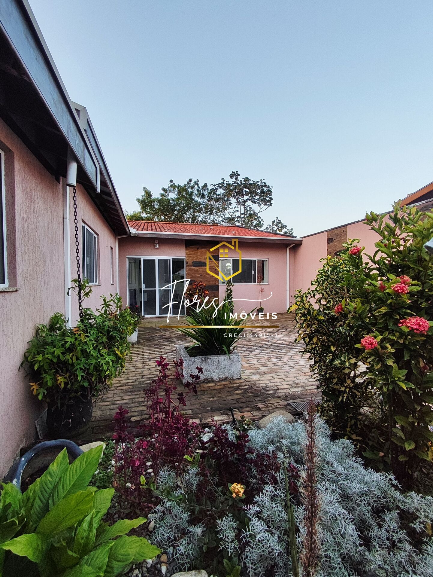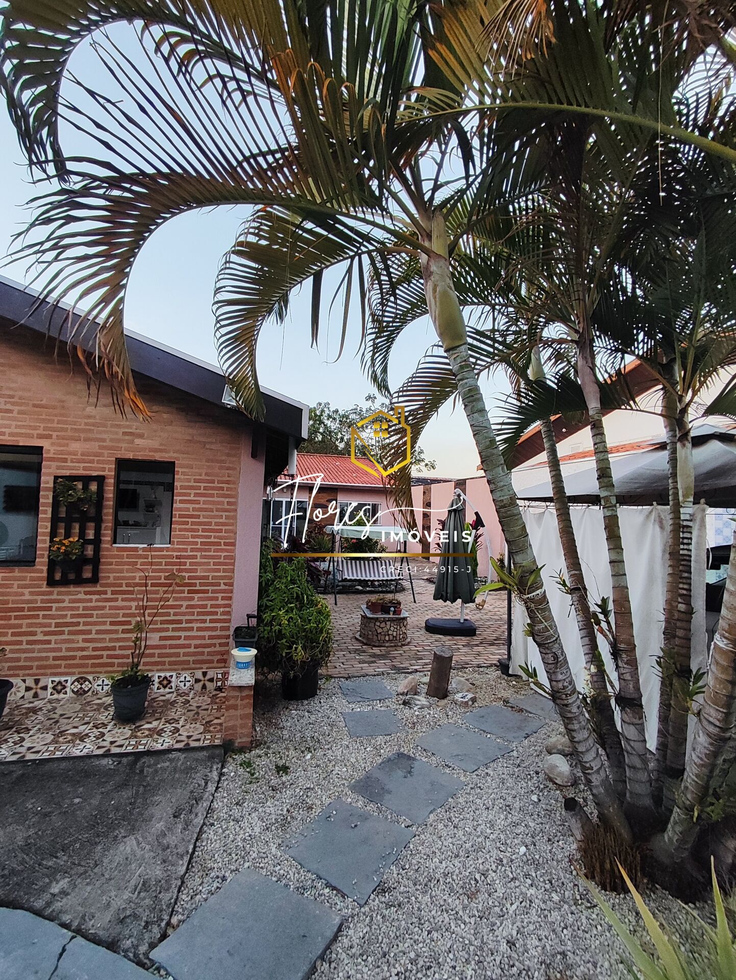 Quintal bem espaçoso com jardim, rancho externo, Piscina (De lona, desmontável), cobertura para dois carros.