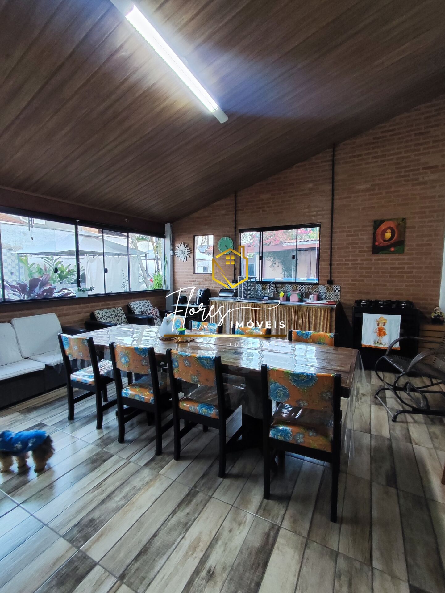 Destaque para o Rancho interno com portas e janelas de vidro, proporcionando conforto e iluminação natural
